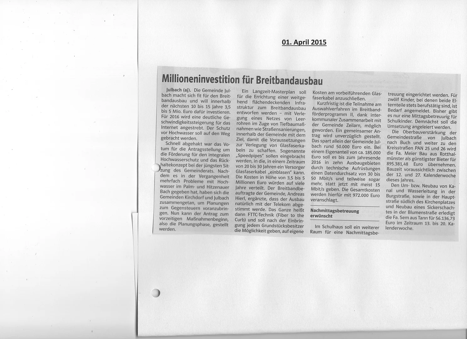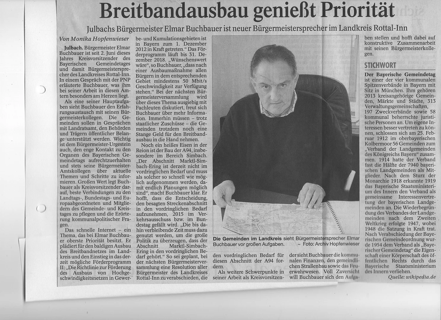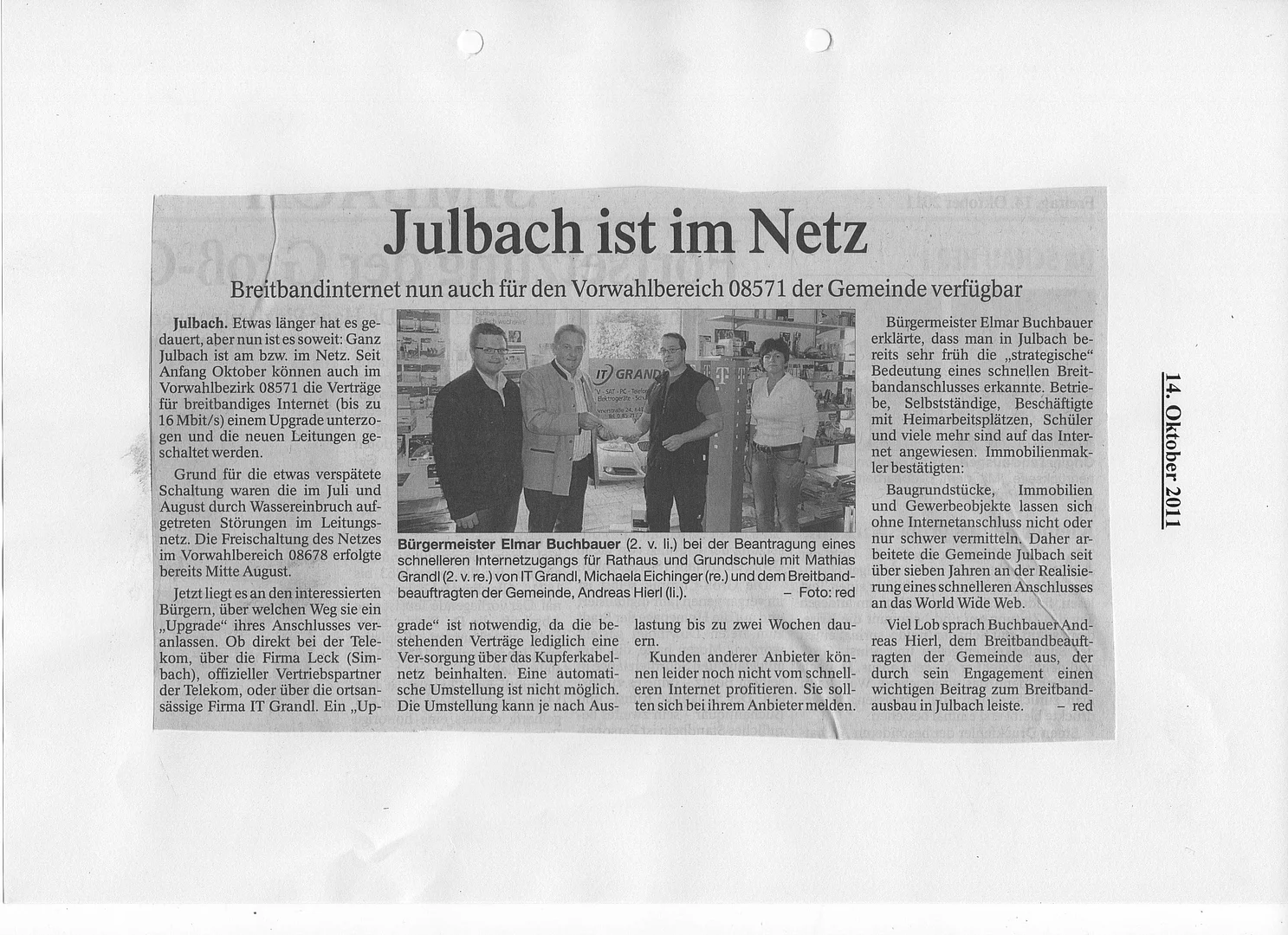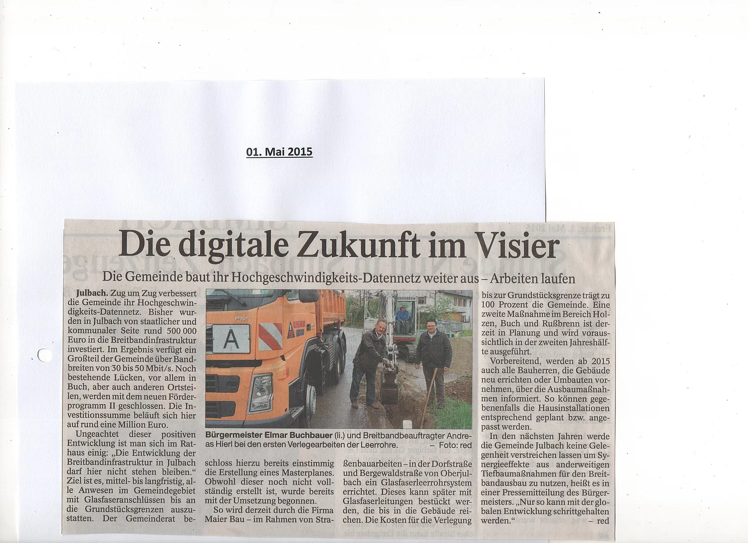 Anfang 2016 erstellte die Breitbandberatung Bayern für die Gemeinde Julbach eine sog. Bitratenanalyse. Diese erlaubt es, die Entwicklung des Breitbandausbaus, für jedes Anwesen, in der Vergangenheit, Gegenwart und Zukunft darzustellen.