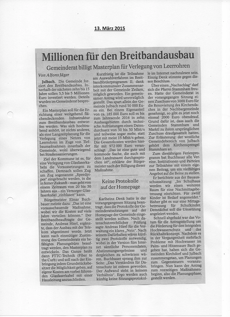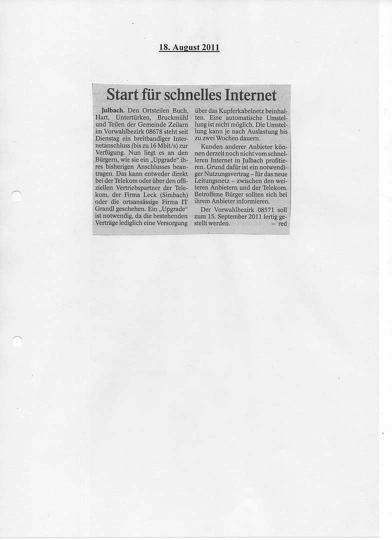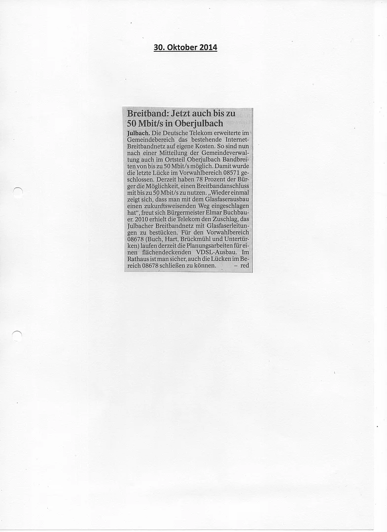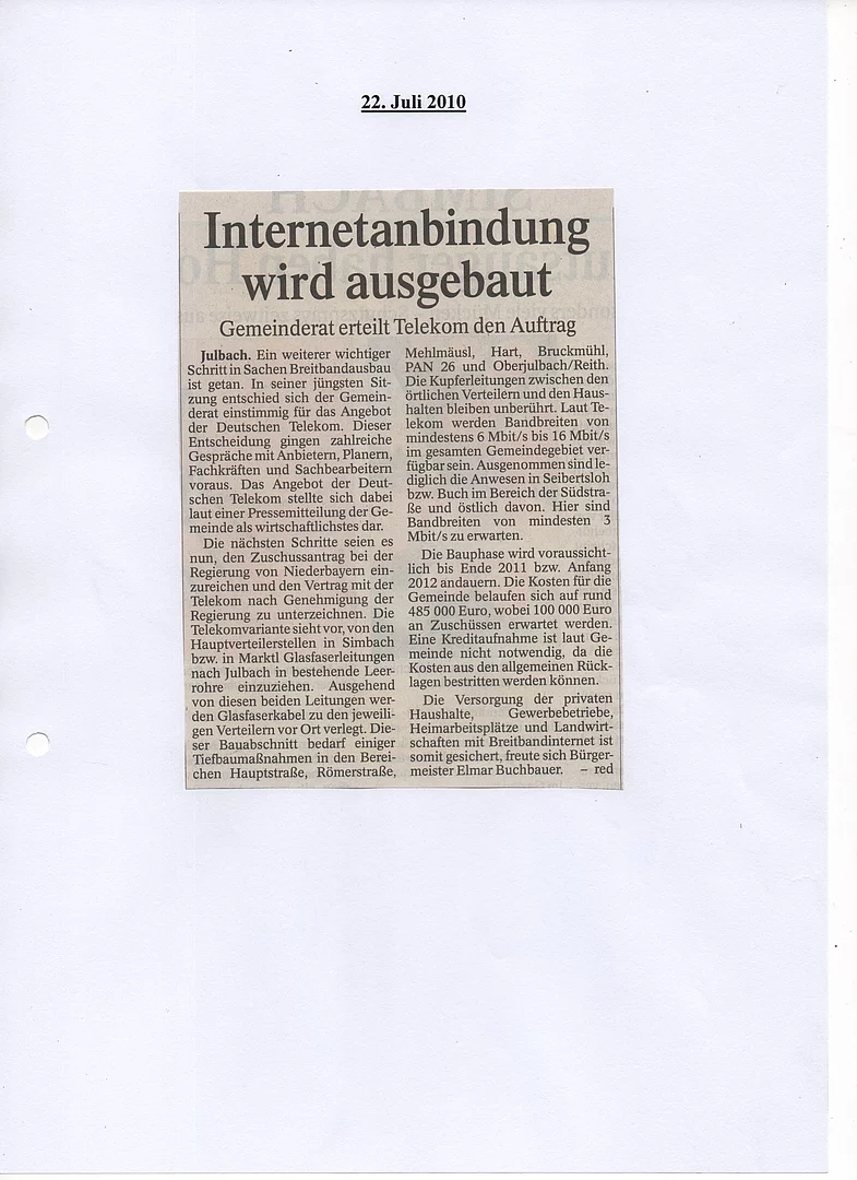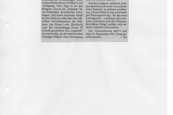 Im Rathaus selbst sind noch genauere Informationen zu Ihrem jeweiligen Anschluss bzw. dessen Möglichkeiten erhältlich.